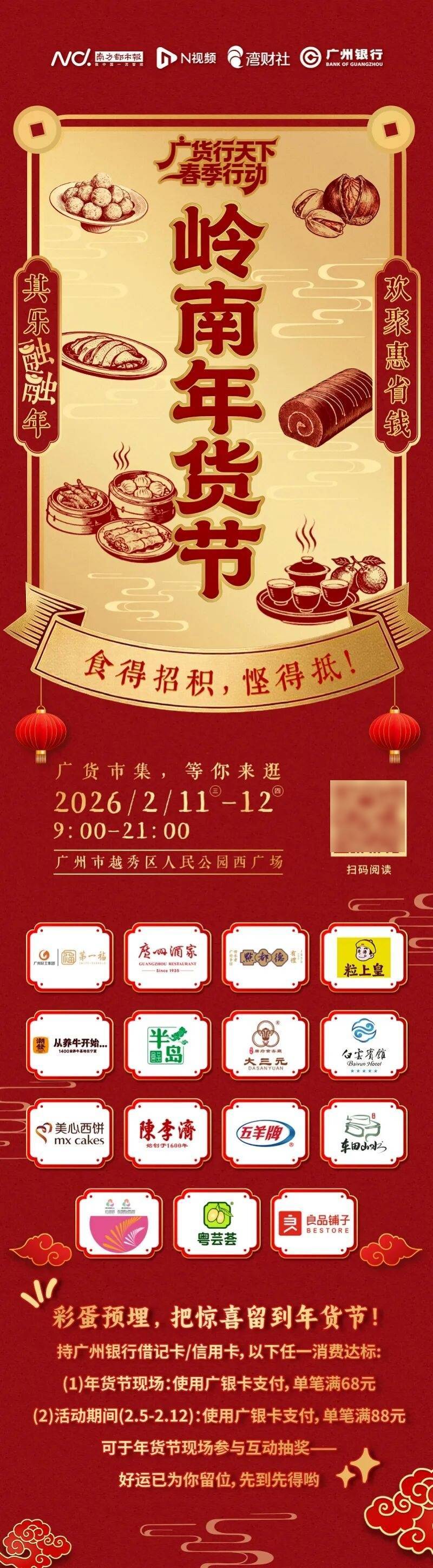 2026年2月11日至12日,越秀区人民公园西广场,这场由南方都市报社与广州银行联袂呈现的“广货行天下”岭南年货节,正以“媒体+金融”的创新姿态,邀请广大市民共赴一场金融实惠、广府年味的盛宴,共同见证金融消费新逻辑的生动实践。