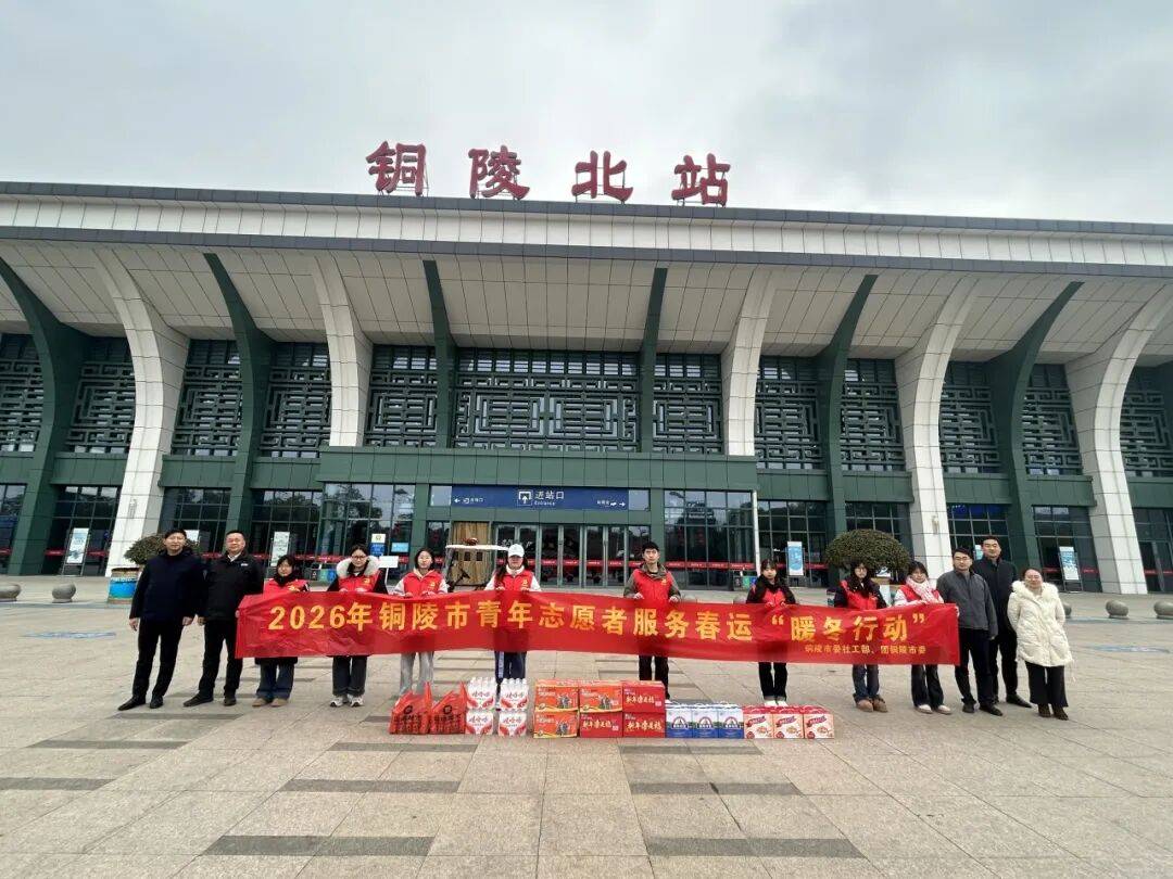 2月10日,市委社会工作部副部长杨国刚、团市委副书记戴玮等人来到铜陵高铁北站、铜陵高铁站,看望慰问参与“暖冬行动”的青年志愿者,为他们送去酸奶、八宝粥等慰问品,并致以新春问候。戴玮与青年志愿者亲切交流,详细了解他们的工作内容、服务时长及后勤保障情况,对大家顶风冒寒、坚守岗位的奉献精神给予充分肯定。同时叮嘱志愿者们注意防寒保暖,做好个人防护,确保志愿服务安全有序开展。