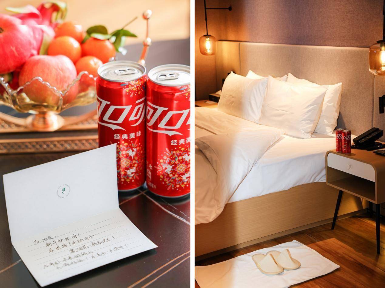 线下,“荟享新年 乐在一起”马年新春主题展走进超1500家锦江旗下酒店,到店客人拍照打卡发布小红书笔记,即可领取马年限定新年烟花罐可口可乐等惊喜礼,还有机会抽取可口可乐定制周边。从大堂到客房,这“一抹红”成为点睛之笔,点燃了酒店的喜庆新春氛围,也为春节旅客带来诸多惊喜和欢乐。
