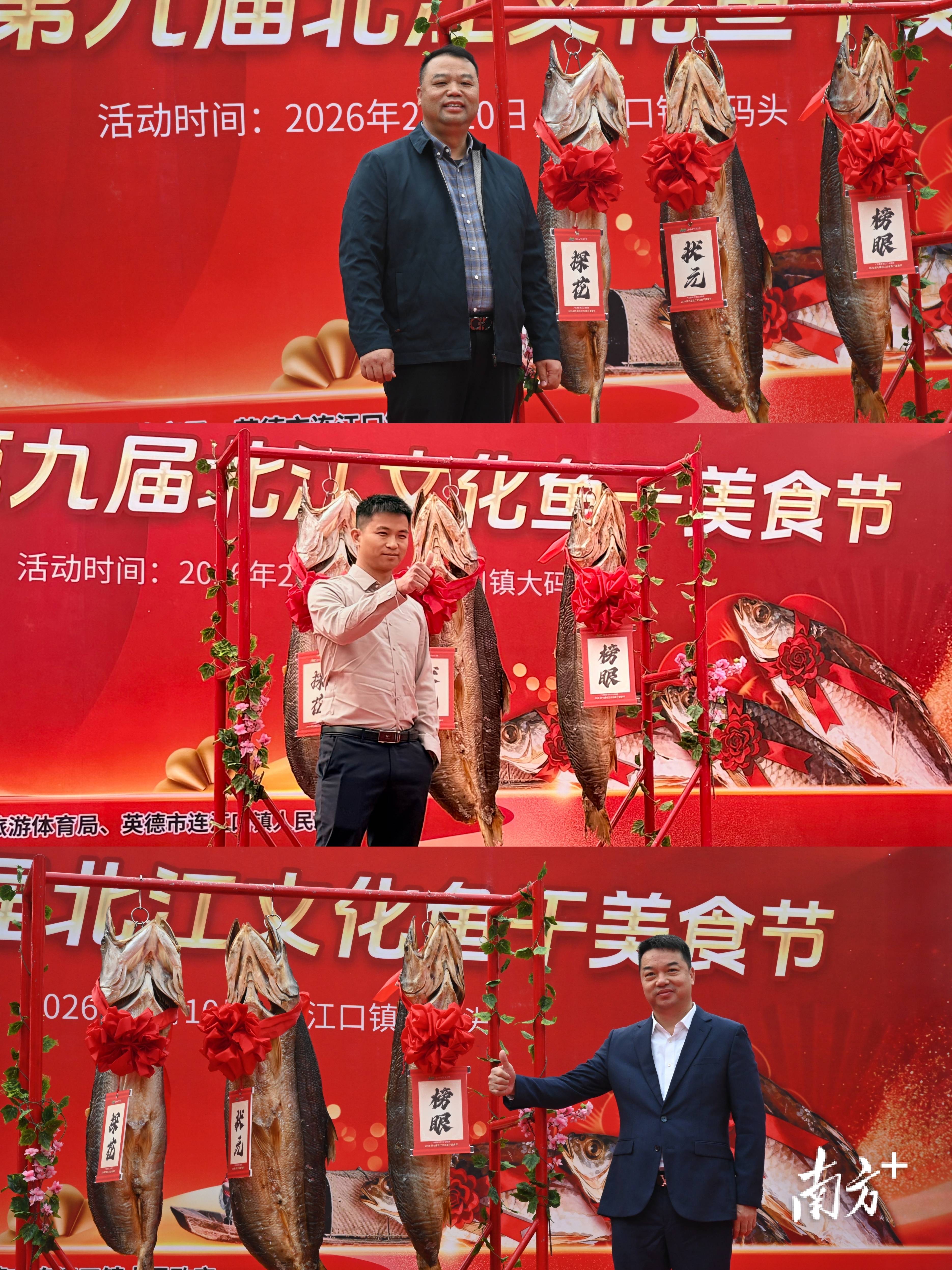 广东英德浈阳峡第九届北江文化鱼干美食节在连江口镇迎春花市启幕。连江口镇宣